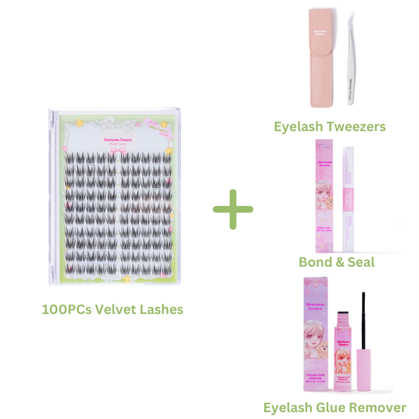 Introducing the 100PCs Velvet Lashes, the best individual lashes for a bold yet elegant enhancement. With 9-13mm length and an elegant C+ curl, these individual eyelash extensions strike the perfect balance between subtlety and drama. Crafted from premium synthetic fibers, they are lightweight yet durable for all-day comfort. The thin, transparent band ensures a seamless and natural fit, making application effortless. Designed with a unique blend of individual, spiky, wispy, 3D, and fluffy styles, these best lash clusters offer a luxurious and eye-catching upgrade to your look. Achieve a flawless, glamorous finish with these false lash clusters!