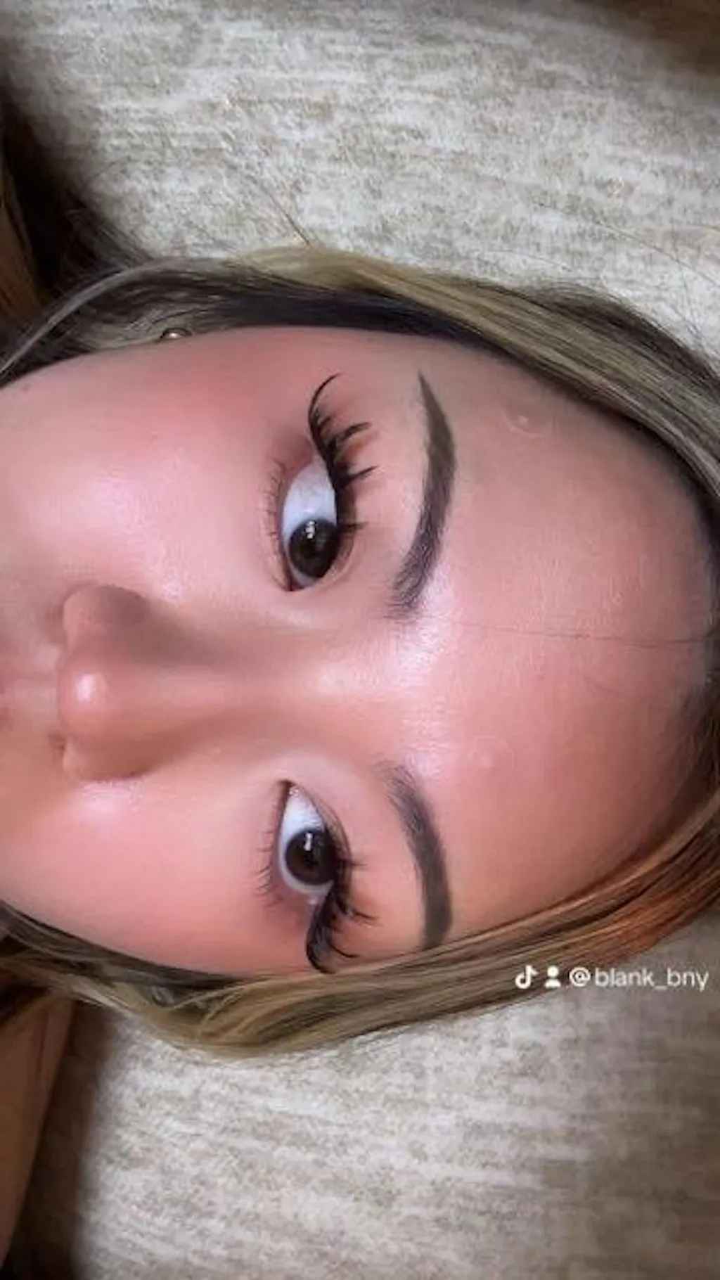 4. Apply the false eyelashes to your real lashes and make sure it's all attached.