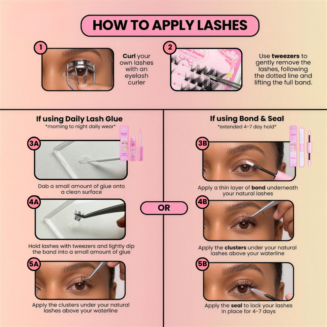 My very first time trying lash clusters and they were very easy to apply after curling my lashes and using the bond & seal as directed. I highly recommend using something to shield your eyes (maybe wearing goggles?) if you do so the glue/seal doesn't leak into your eye as that burns a little bit.