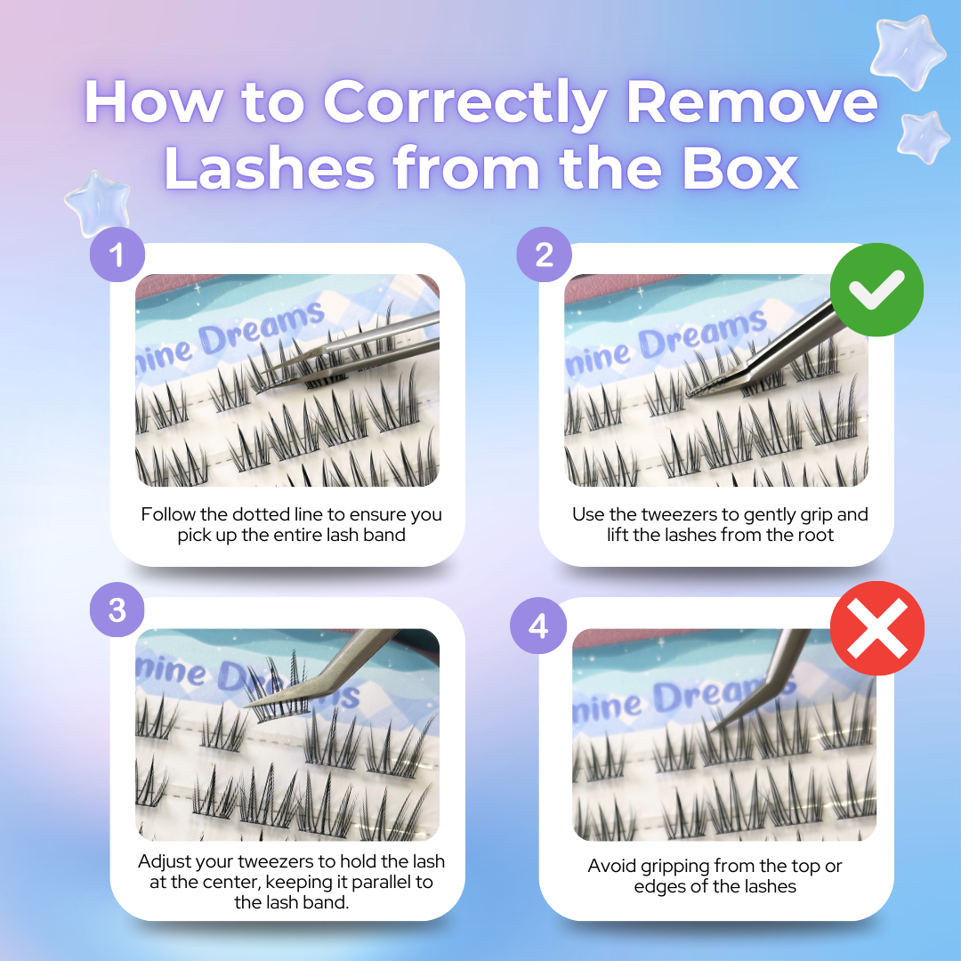 2. Follow the line and use tweezers to grab the lashes from the case, being careful not to touch the adhesive.